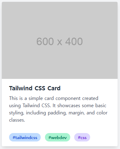 - Tags (span): inline-block, rounded-full, px-3, py-1로 태그를 둥글고 작게 꾸몄습니다. 각 태그의 배경색과 텍스트 색상을 다르게 설정하여 강조 효과를 주었습니다.