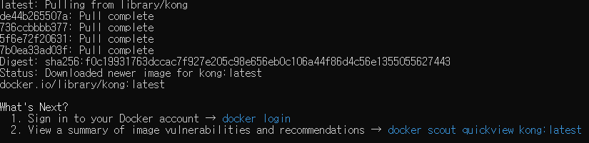 - cmd 또는 터미널을 열고 Kong 이미지를 다운로드합니다.