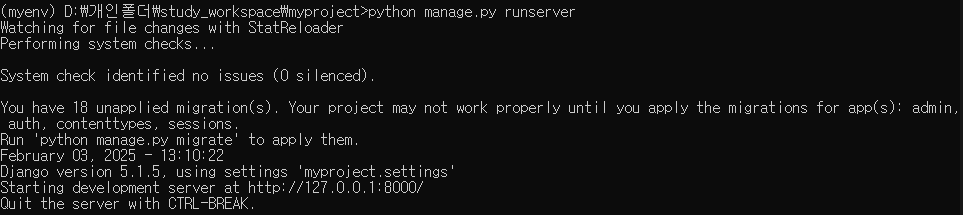 - 개발 서버 실행 ( python manage.py runserver )