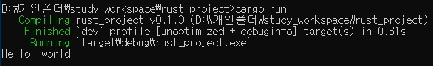 - cargo 를 이용하여 Rust 프로젝트를 생성합니다.