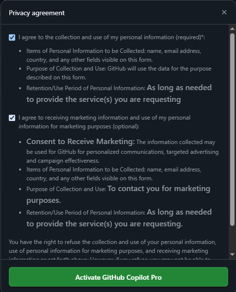- Upgrade to Copilot Pro 버튼을 클릭하시고, 개인정보 및 카드정보를 입력합니다.