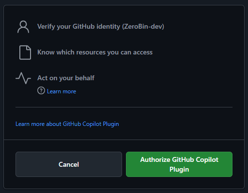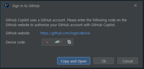 - Authorize GitHub Copilot Plugin을 클릭하면 인증이 완료됩니다.