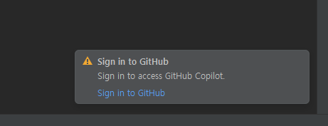 - IntelliJ 재시작 후, 화면 오른쪽 하단에 GitHub Copilot 상태 아이콘이 나타납니다. Sign in to GitHub을 선택합니다.