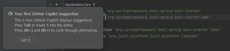 - Copilot의 단축키는 기본적으로 Tab으로 제안을 수락하고, Alt + ] 또는 Alt + [ 로 다른 제안을 탐색할 수 있습니다.