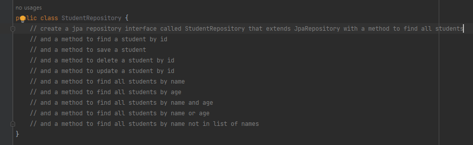 패키지경로/repository 폴더에 StudentRepository.java 파일을 만들면 기본적인 프롬프트들이 있어, 참고하여 요청할 수 있습니다.