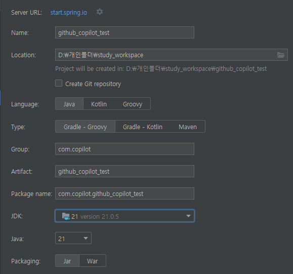 - 간단한 SpringBoot 프로젝트를 생성합니다.