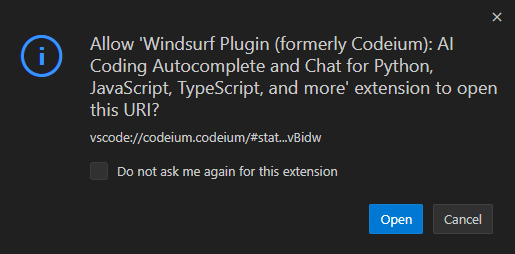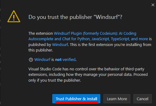 - VS Code의 Extensions 탭에서 “Windsurf Plugin” 또는 "codeium" 을 검색해 설치합니다.
