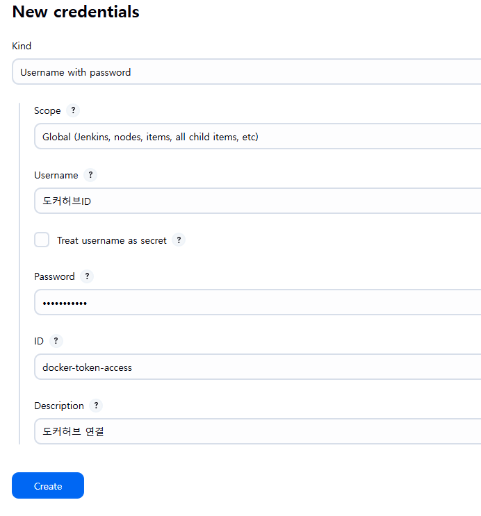 | dockerhub-access | Username/Password | Docker Hub 로그인용 |