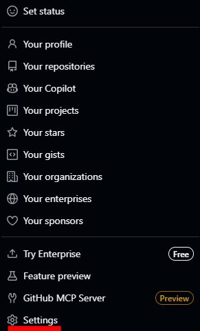 - Github 로그인 후 > 우측상단 프로필 클릭 > Settings 클릭