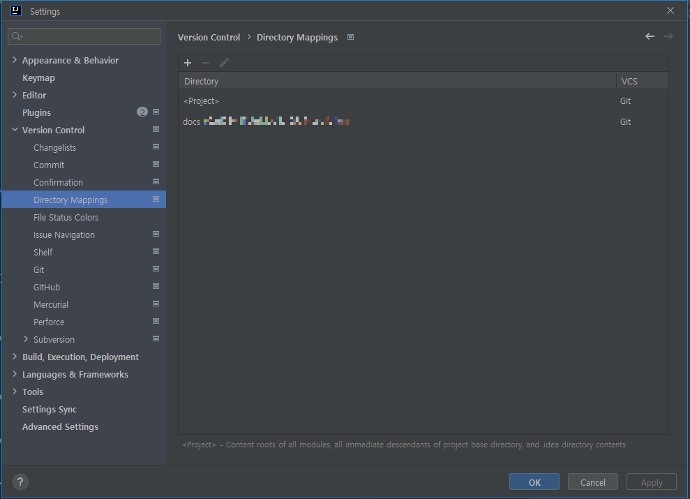 File -> Settings -> Version Control -> Directory Mappings -> + 클릭