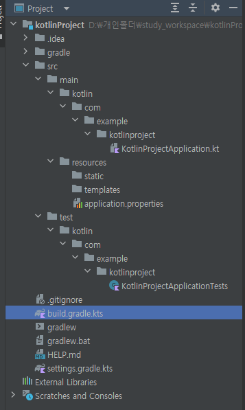- 프로젝트가 생성이 되면 아래처럼 기본적은 구조를 갖추게 됩니다.