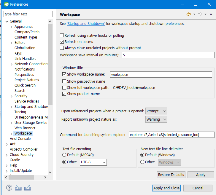 3. Workspace encoding 확인