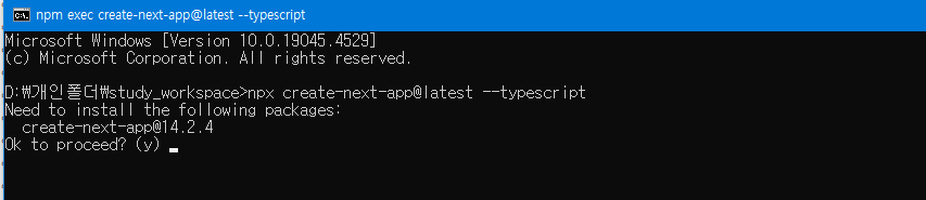 - workspace 경로에 npx 명령어를 입력하여 nextjs를 설치합니다.